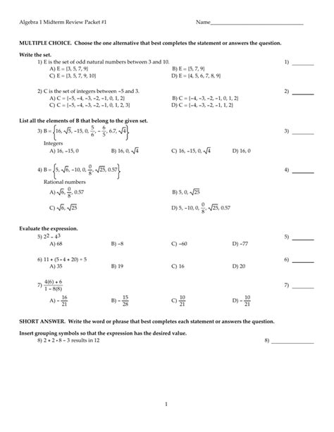 Download algebra 1 review packet Audio CD BookBoon